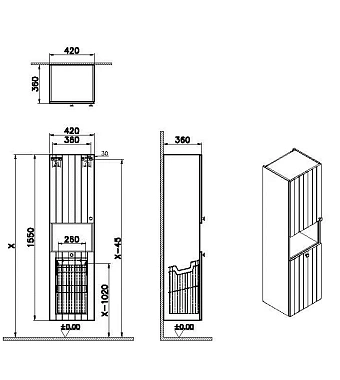 «Пенал подвесной VITRA Root Groove 69095 36х42х155см серый» в Ялте и Крыму