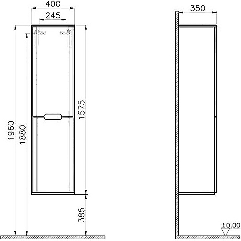 Пенал подвесной VITRA Sento 60854 35х40х158см матовый белый - купить в интернет-магазине Орегон с доставкой в регионы Крыма.