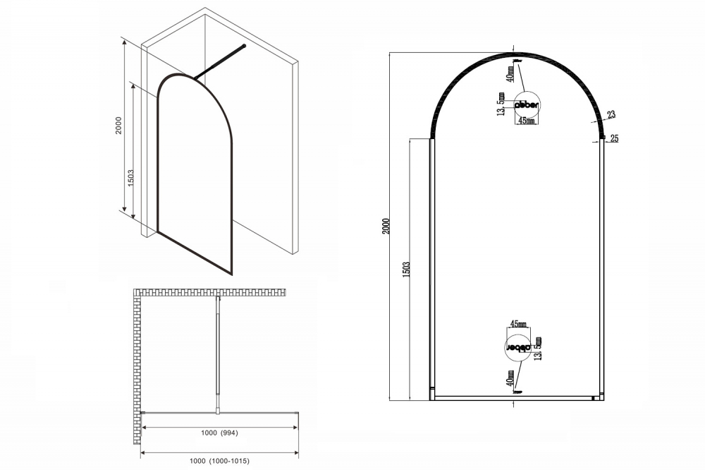 Перегородка для душа Abber Immer Offen AG64100B 200х100см стекло прозрачное