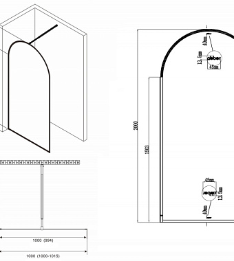 Перегородка для душа Abber Immer Offen AG64100B 200х100см стекло прозрачное - купить в интернет-магазине Орегон с доставкой в регионы Крыма.