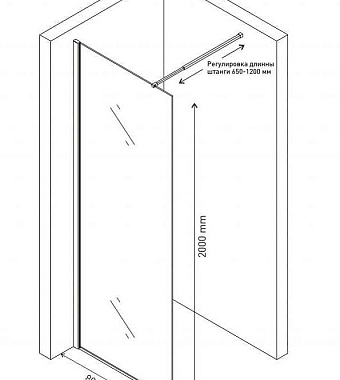 Перегородка для душа BERGES SKY 64001 200х80см стекло прозрачное