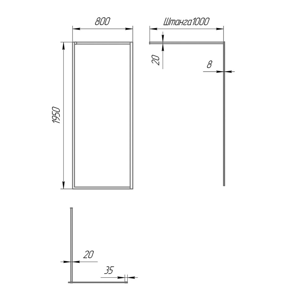 Толщина стекла, мм 8