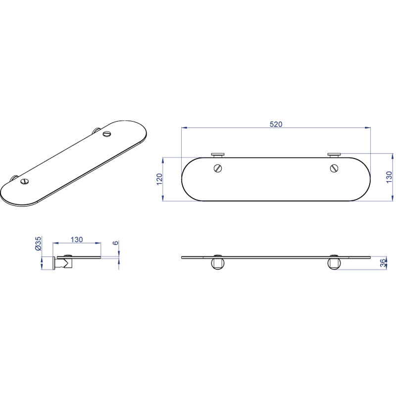 Полка в ванную овальная Azario FORNY AZ-88303 1-ярусная 13,1х52см хром - купить в интернет-магазине Орегон с доставкой в регионы Крыма.