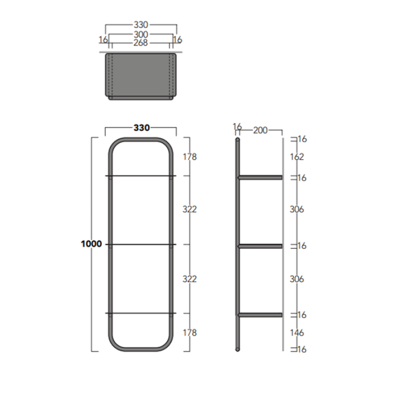 Полка в ванную прямоугольная SIMAS Wave WASS06 nero matt 3-ярусная 21х33см чёрный матовый - купить в интернет-магазине Орегон с доставкой в регионы Крыма.