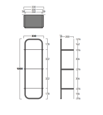 Полка в ванную прямоугольная SIMAS Wave WASS06 nero matt 3-ярусная 21х33см чёрный матовый