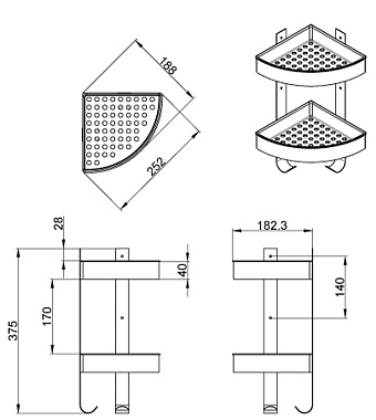 Полка в ванную угловая Azario AZ-833-2 2-ярусная 19х25,2см хром - купить в интернет-магазине Орегон с доставкой в регионы Крыма.