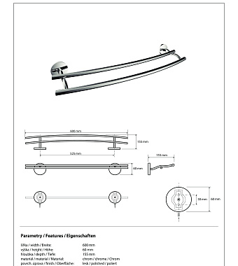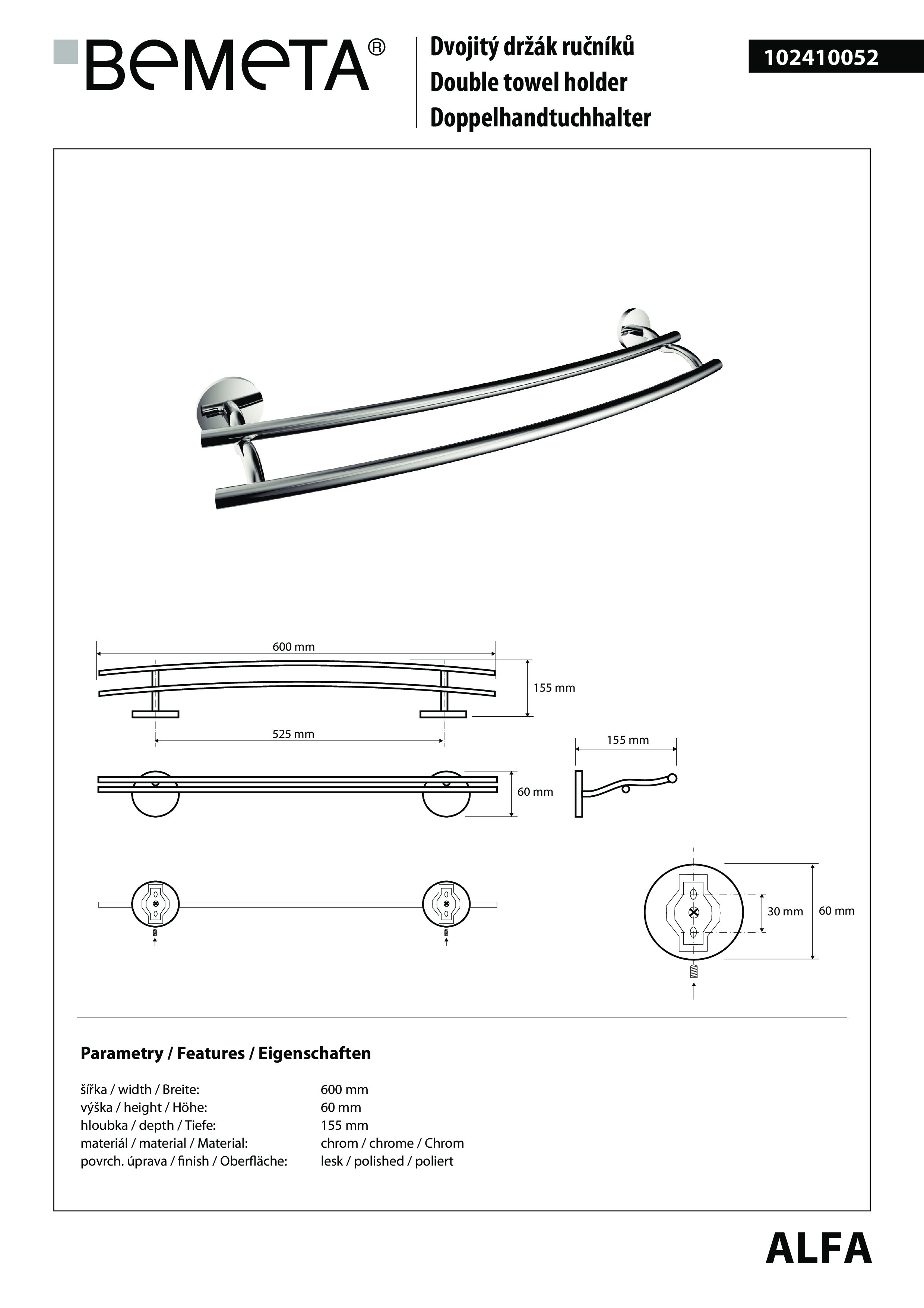 Полотенцедержатель BEMETA Alfa 102410052 хром 60см