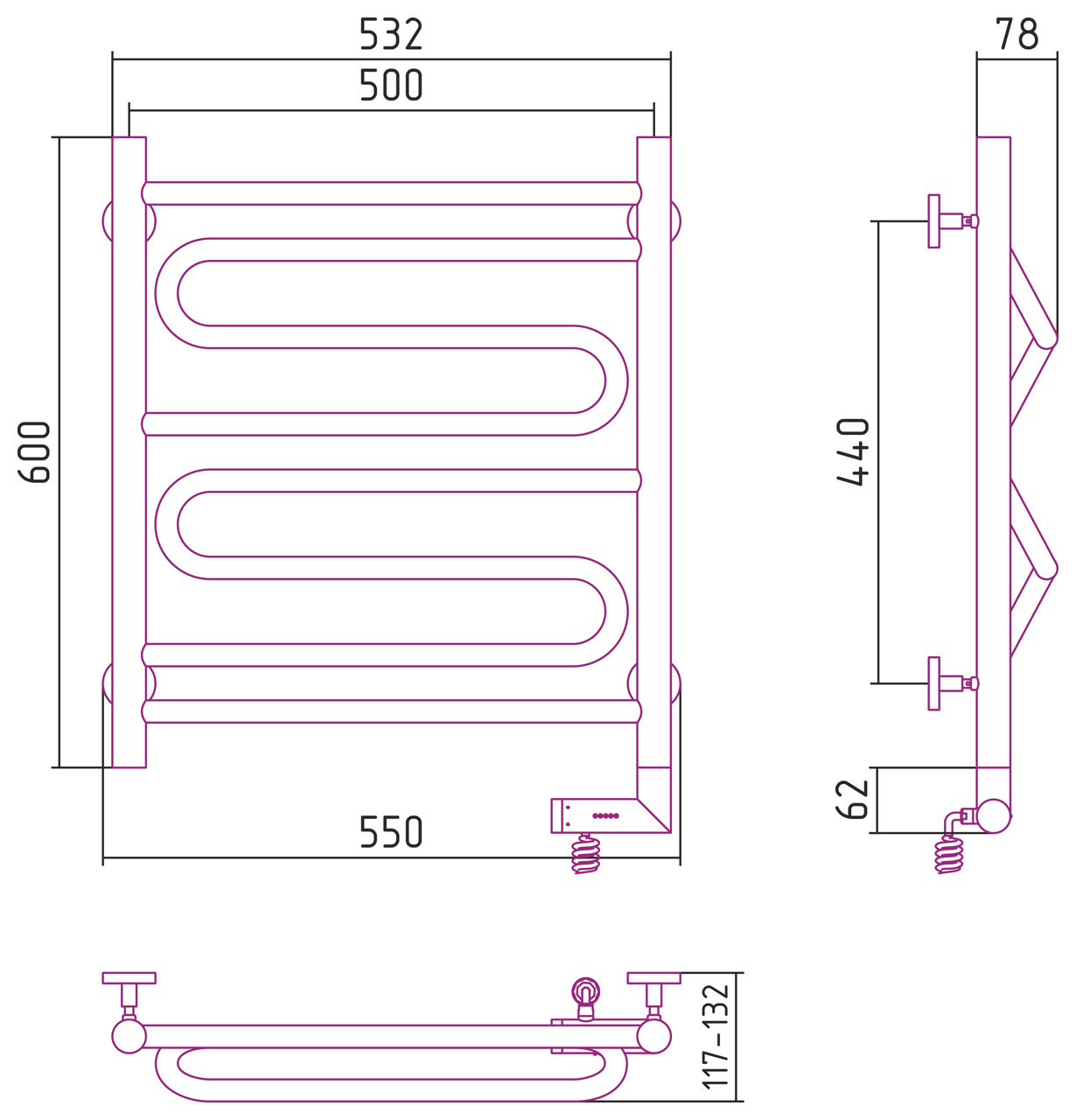 Полотенцесушитель СУНЕРЖА 00-5219-6050 хром - купить в интернет-магазине Орегон с доставкой в регионы Крыма.