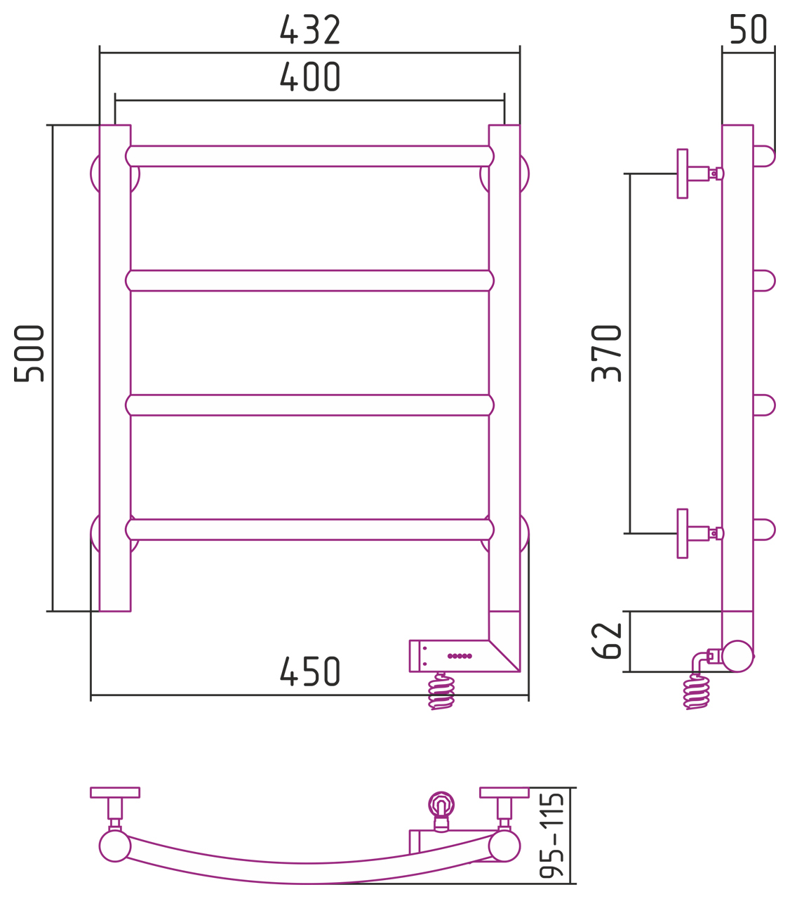 Полотенцесушитель СУНЕРЖА 05-5201-5040 бронза состаренная - купить в интернет-магазине Орегон с доставкой в регионы Крыма.