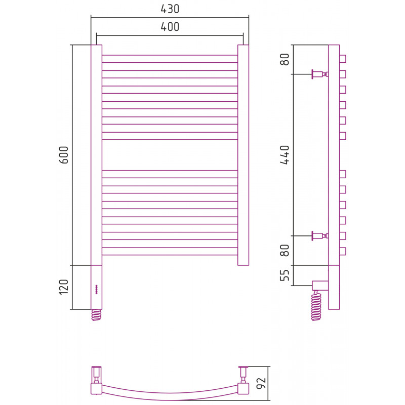 Полотенцесушитель СУНЕРЖА Аркус 3.0 071-5704-6040 сатин - купить в интернет-магазине Орегон с доставкой в регионы Крыма.