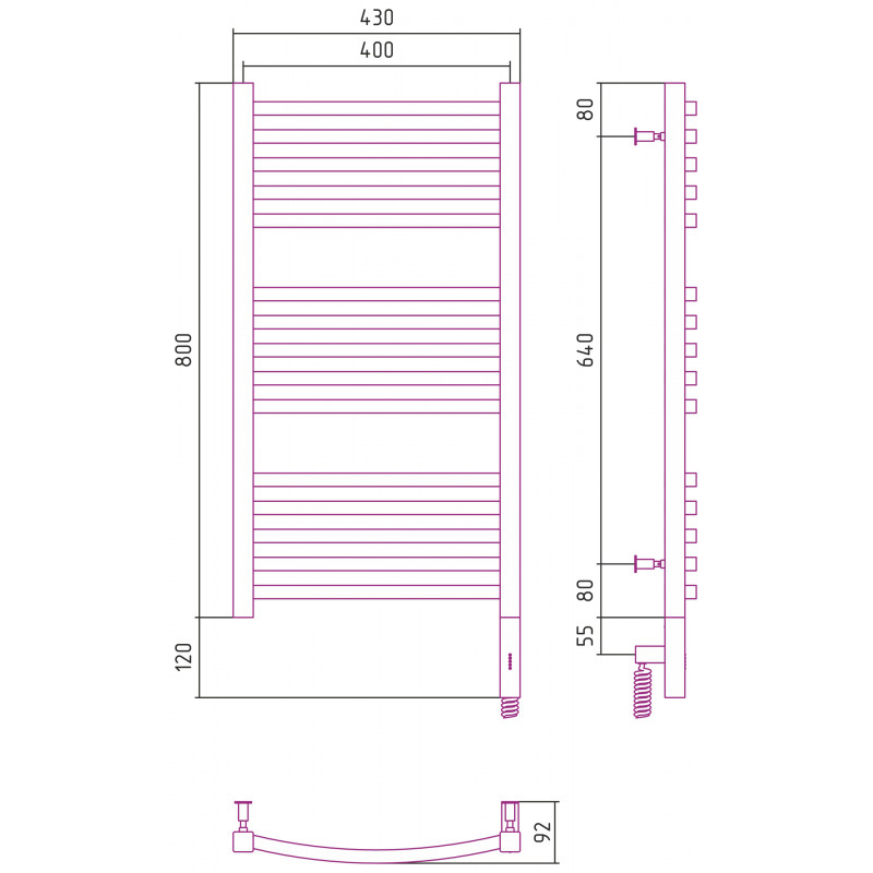 Полотенцесушитель СУНЕРЖА Аркус 3.0 071-5705-8040 сатин - купить в интернет-магазине Орегон с доставкой в регионы Крыма.