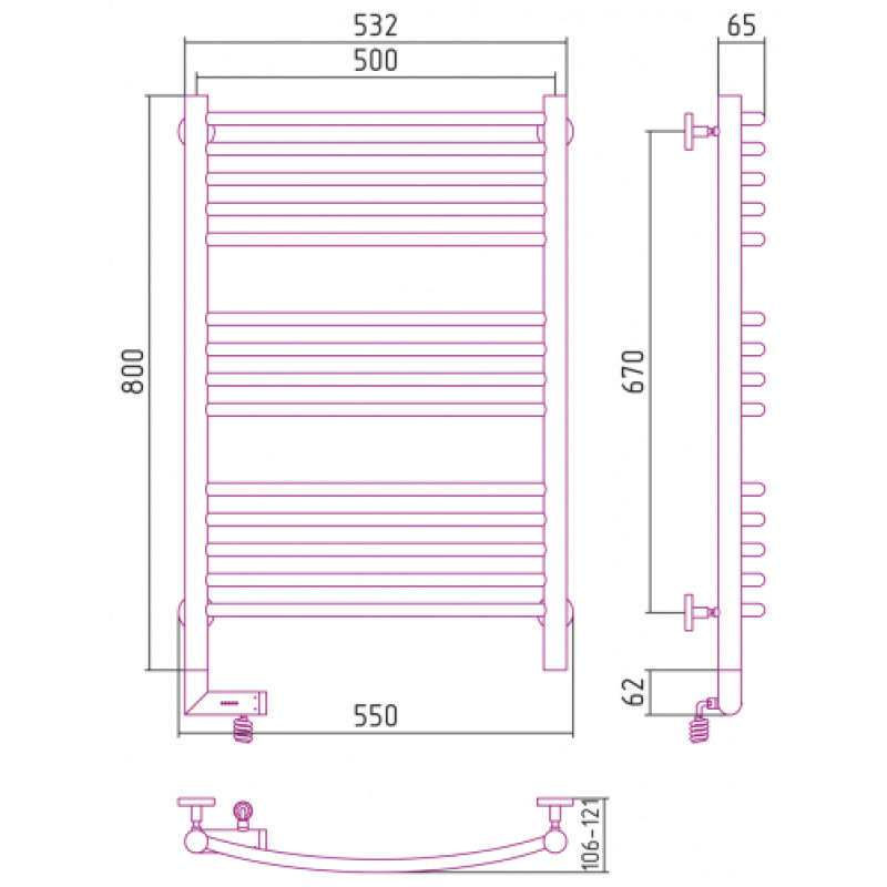 Полотенцесушитель СУНЕРЖА Богема 2.0 выгнутая 30-5202-8050 белый матовый - купить в интернет-магазине Орегон с доставкой в регионы Крыма.