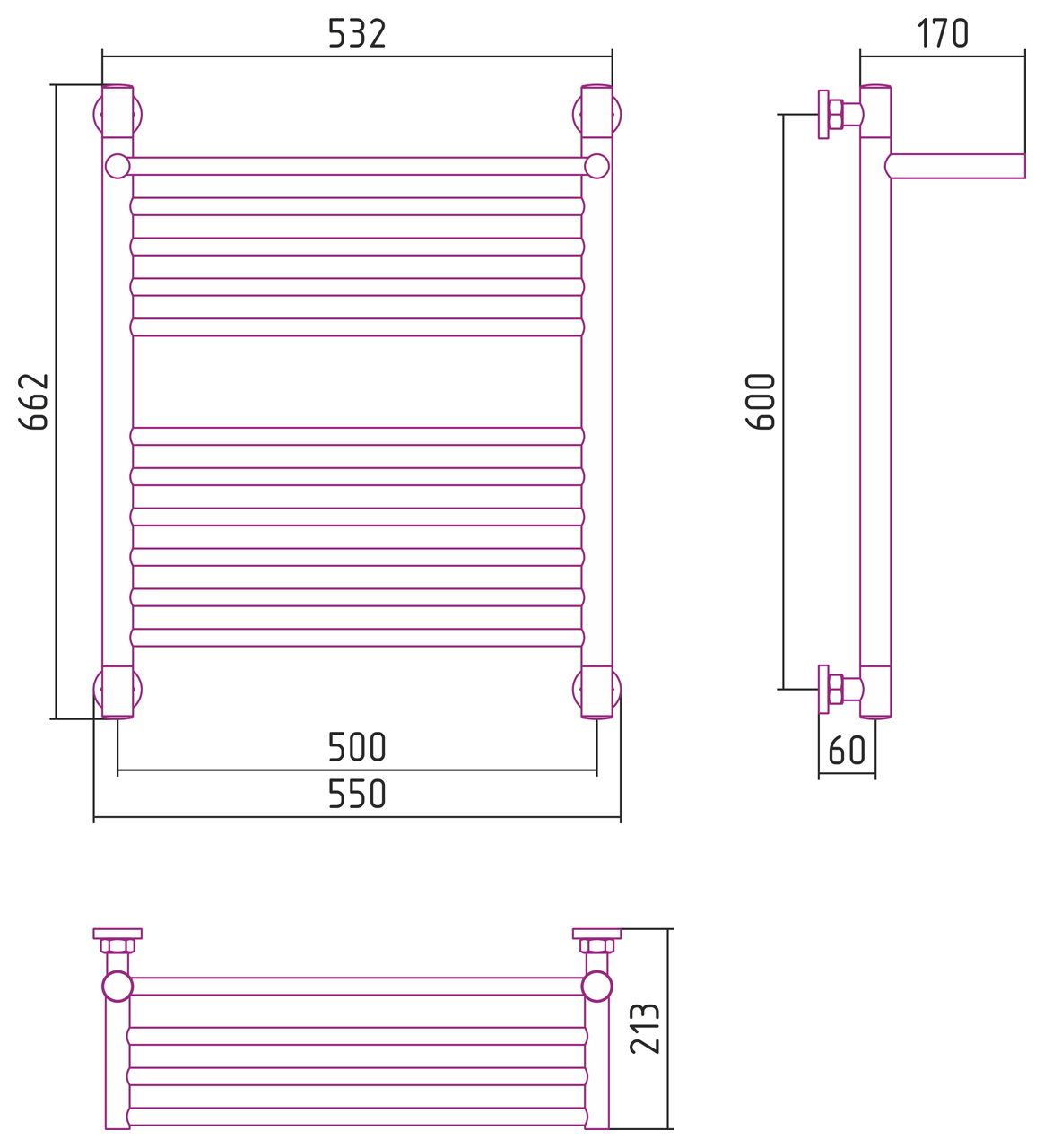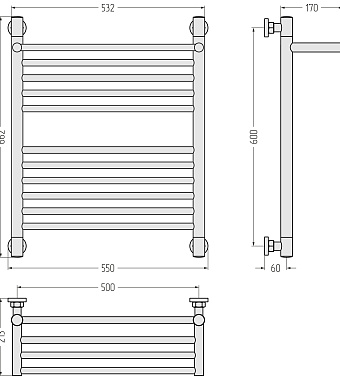 Полотенцесушитель СУНЕРЖА Богема+ с 1 полкой 15-0223-6050 Титаниум - купить в интернет-магазине Орегон с доставкой в регионы Крыма.