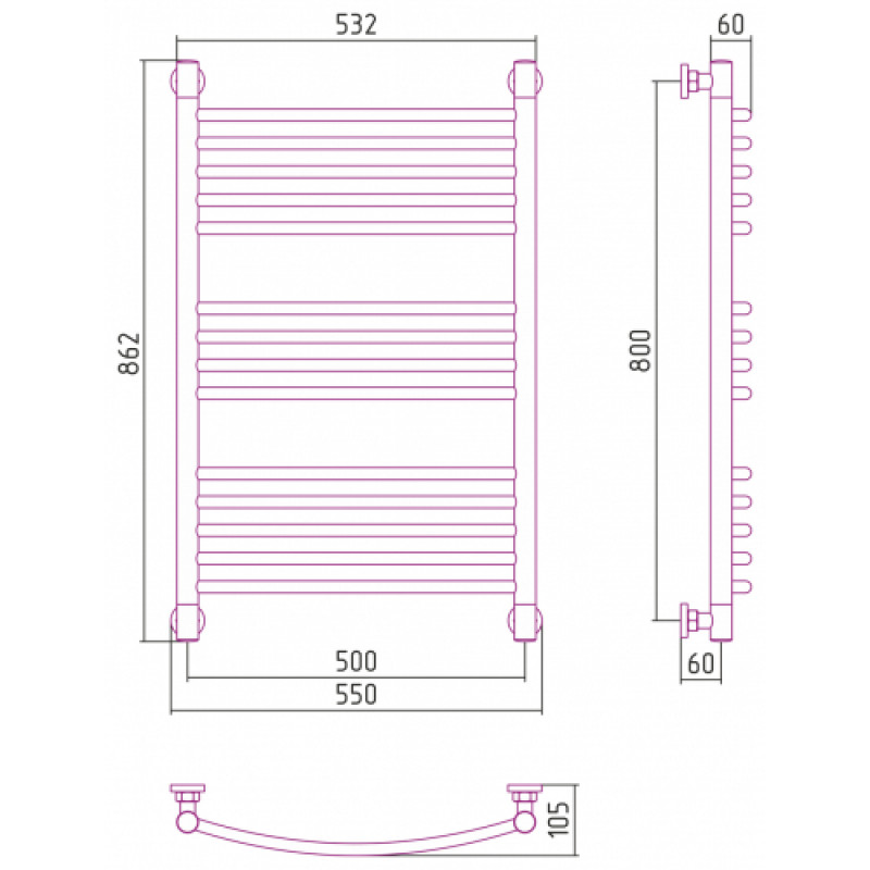 Полотенцесушитель СУНЕРЖА Богема+ выгнутая 30-0221-8050 белый матовый - купить в интернет-магазине Орегон с доставкой в регионы Крыма.