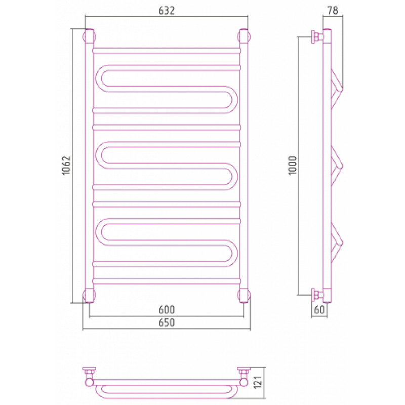 Полотенцесушитель СУНЕРЖА Элегия+ 00-0205-1060 хром - купить в интернет-магазине Орегон с доставкой в регионы Крыма.