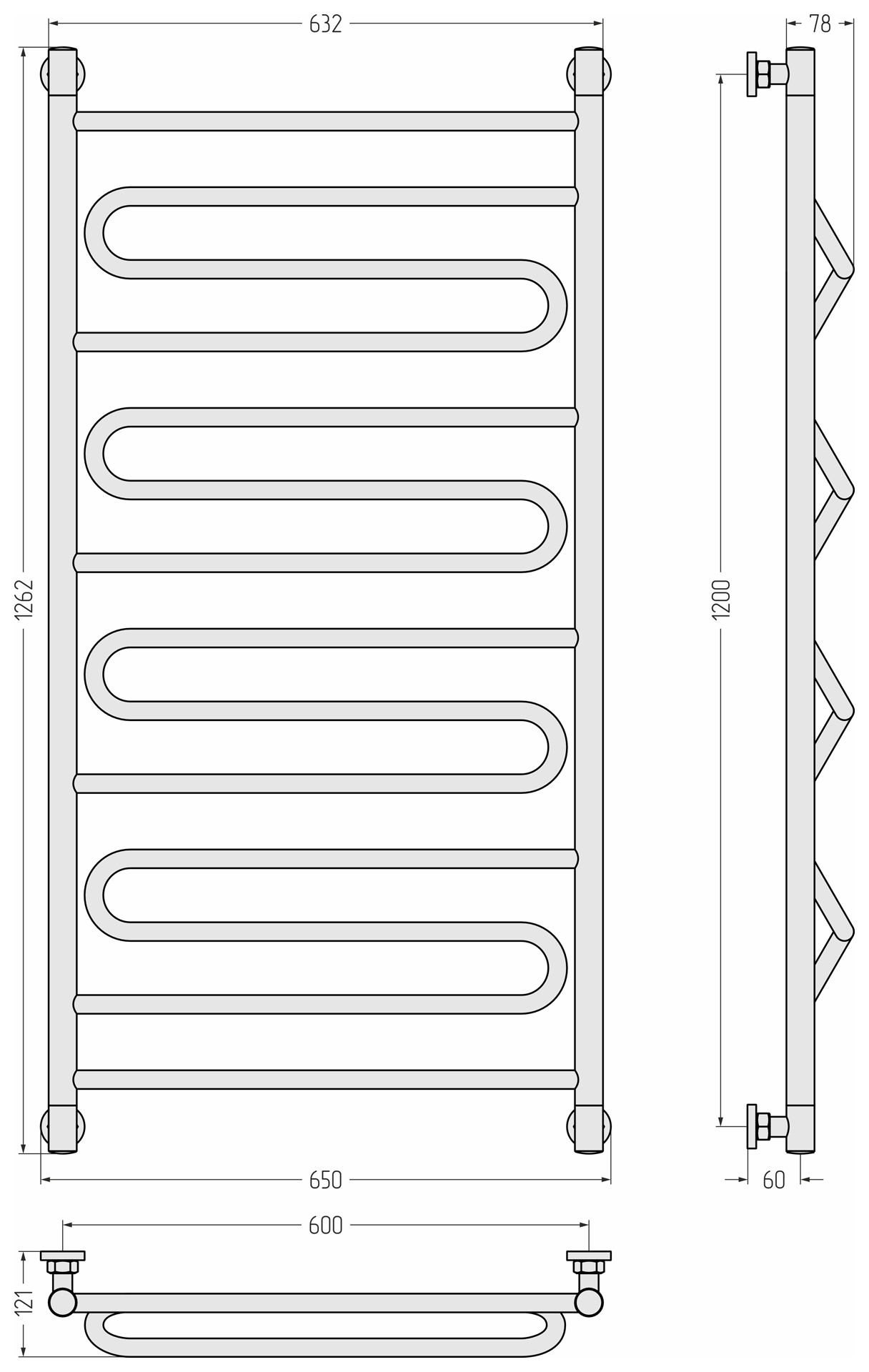 Полотенцесушитель СУНЕРЖА Элегия+ 00-0205-1260 хром - купить в интернет-магазине Орегон с доставкой в регионы Крыма.