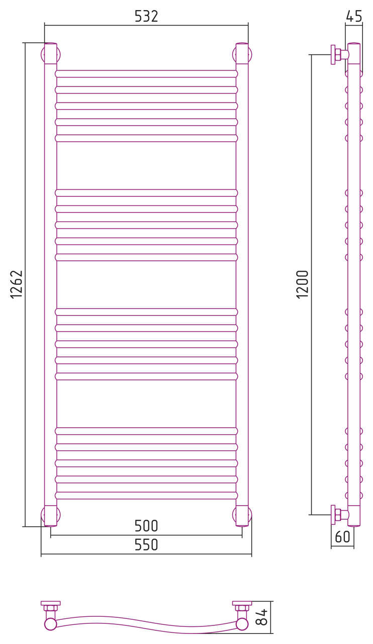 Полотенцесушитель СУНЕРЖА Флюид+ 071-0222-1250 сатин - купить в интернет-магазине Орегон с доставкой в регионы Крыма.