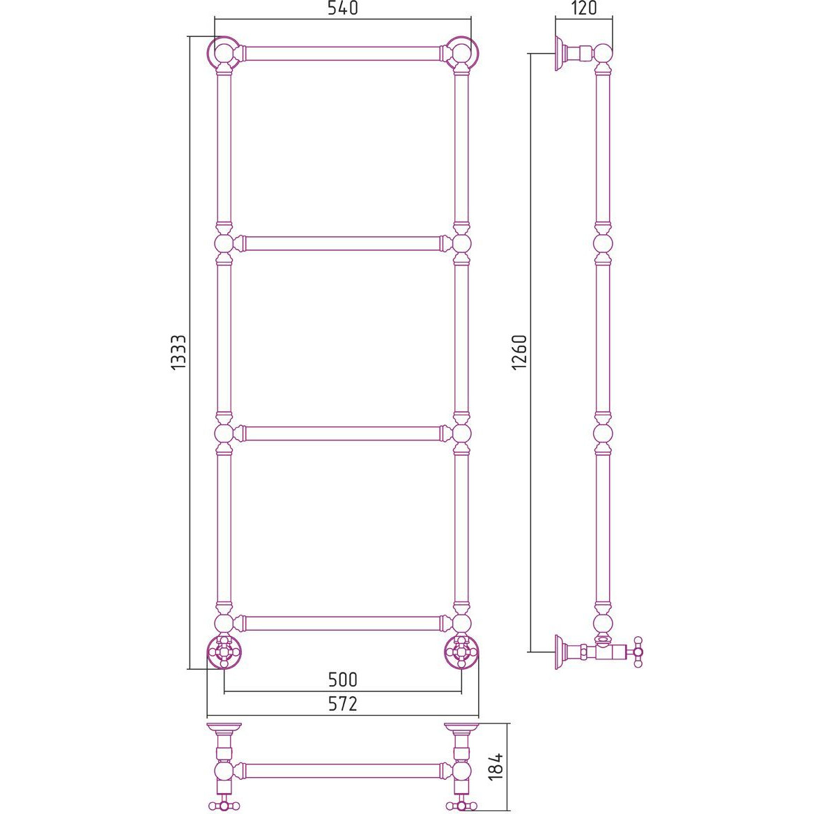 Полотенцесушитель СУНЕРЖА Ренессанс 051-0280-1250 состаренная латунь - купить в интернет-магазине Орегон с доставкой в регионы Крыма.