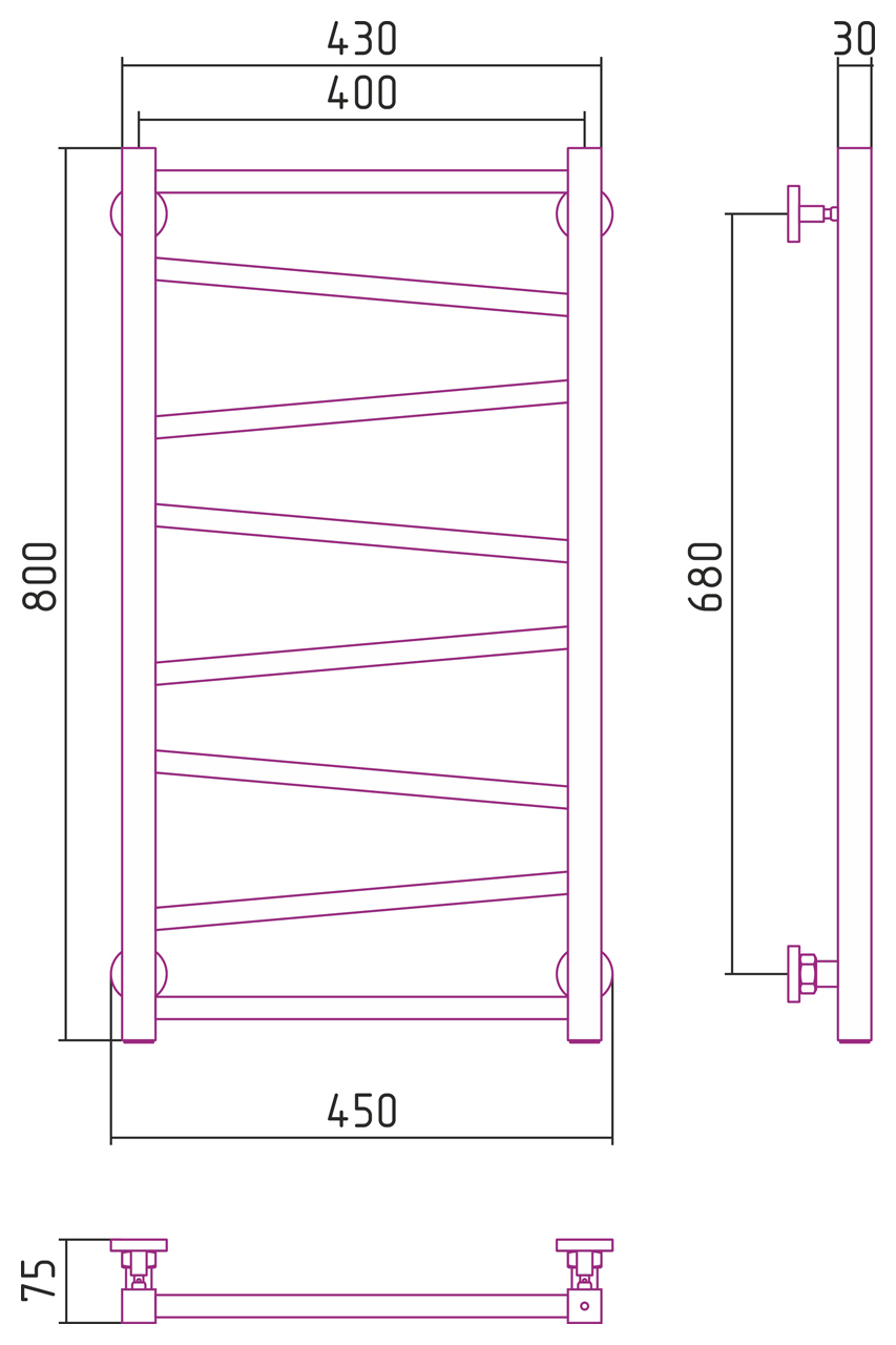 Полотенцесушитель СУНЕРЖА Сирокко 071-0253-8040 сатин - купить в интернет-магазине Орегон с доставкой в регионы Крыма.
