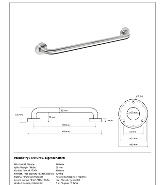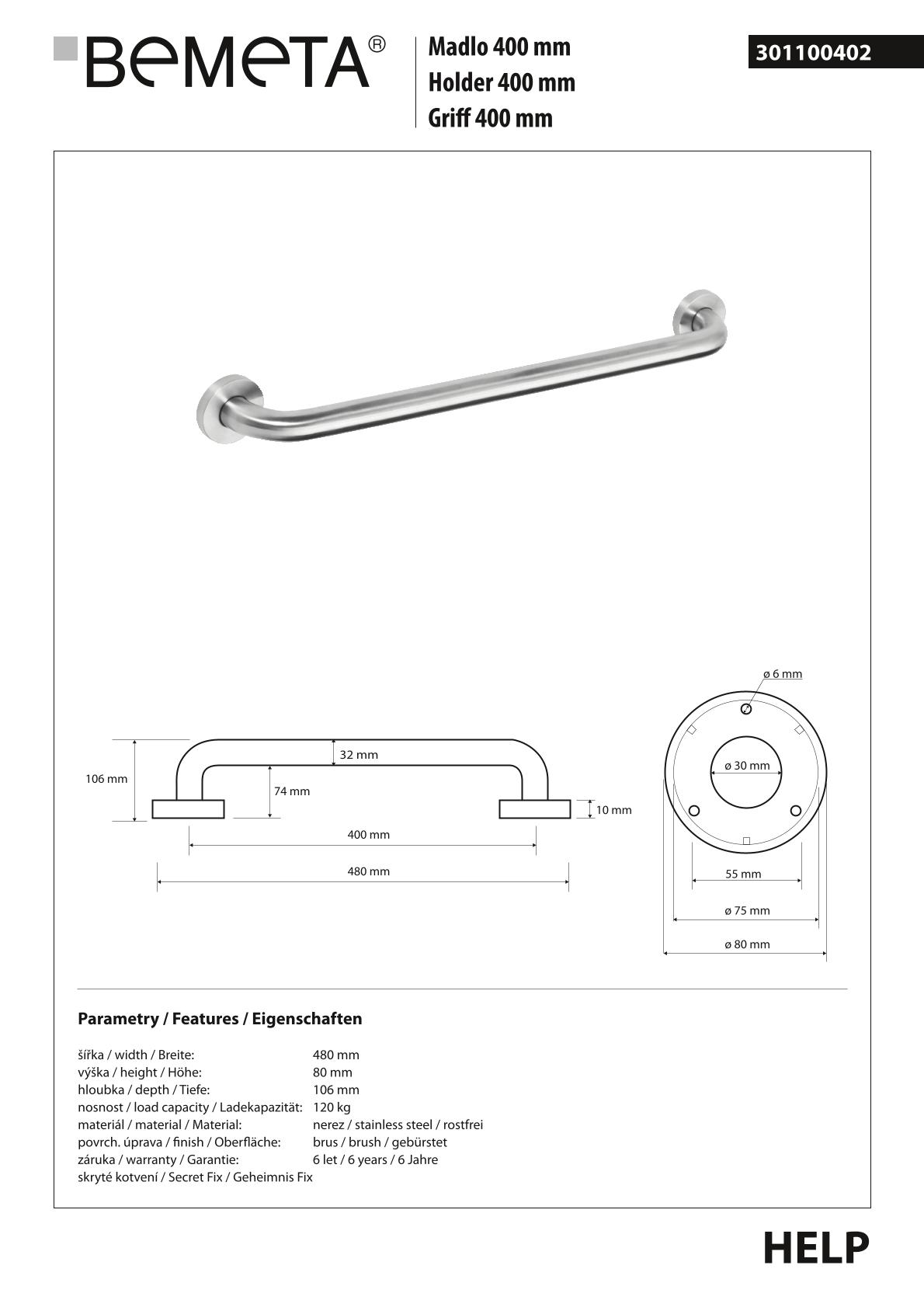 Поручень для ванной BEMETA HELP program 301100402 10,6см хром