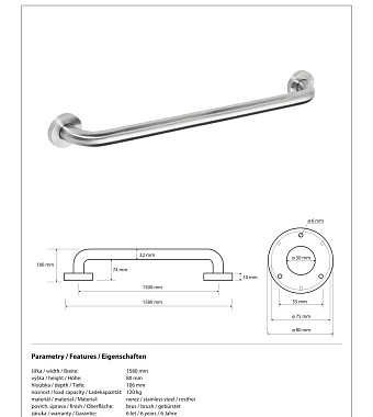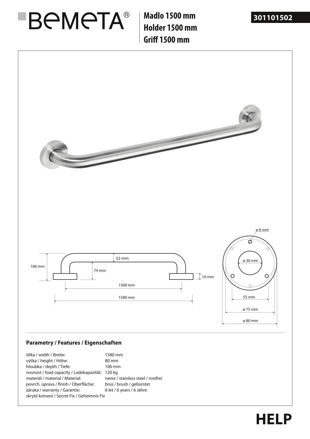 Поручень для ванной BEMETA HELP program 301101502 10,6см хром
