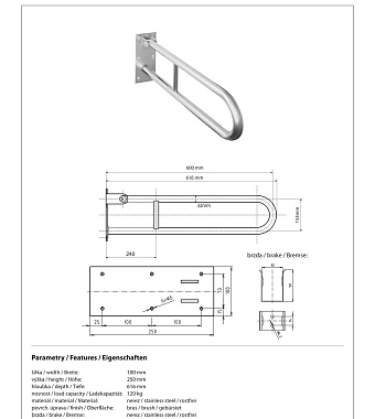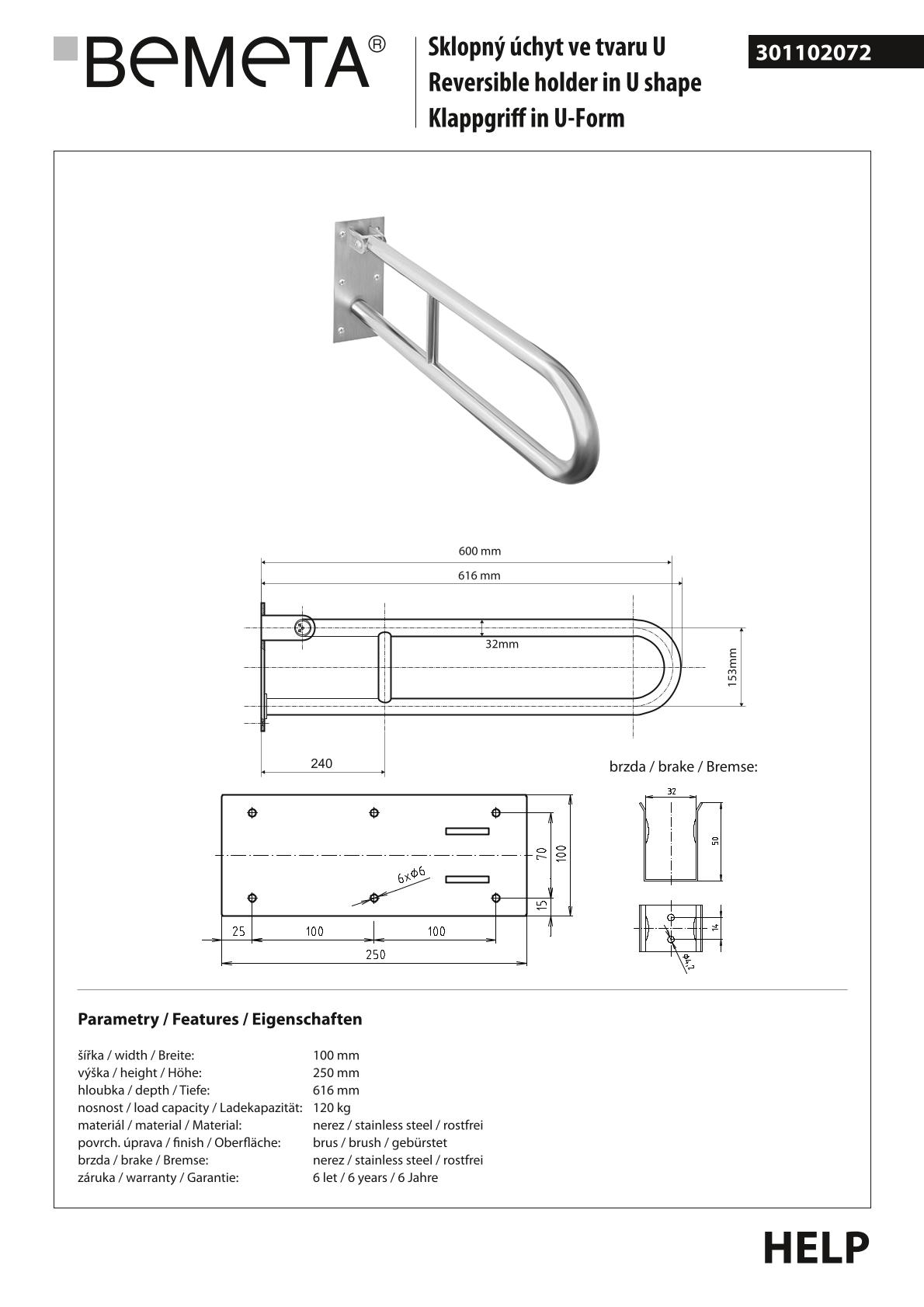 Поручень для ванной BEMETA HELP program 301102072 61,6см хром