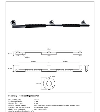 Поручень для ванной BEMETA OMEGA 104507691 8см чёрный - купить в интернет-магазине Орегон с доставкой в регионы Крыма.