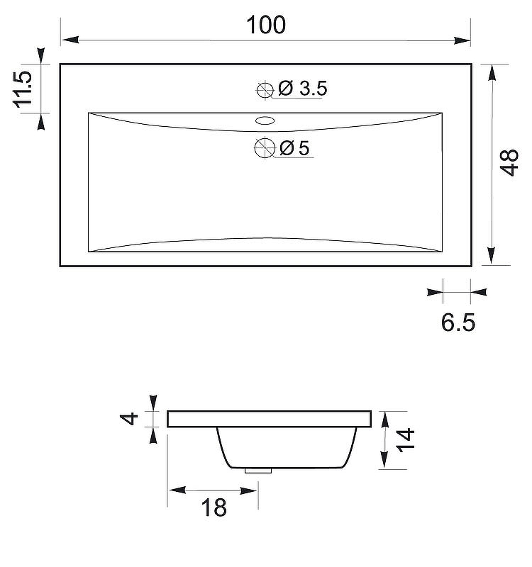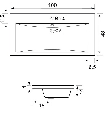 Раковина мебельная AQUANET Нота NEW 204096 100х14см