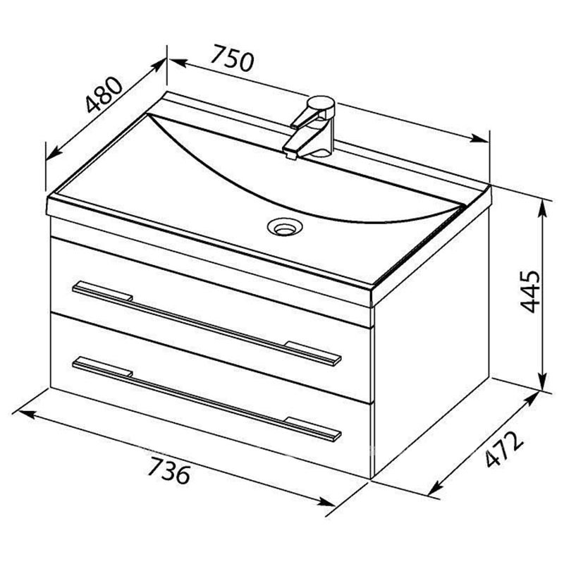 Раковина мебельная AQUANET Нота NEW 204118 75х14см