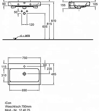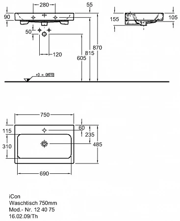 Раковина мебельная GEBERIT iCon 124075000 75х49см