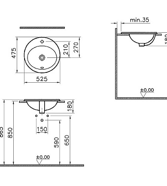 Раковина на столешницу VITRA S20 5468B003-0001 52,5х18см
