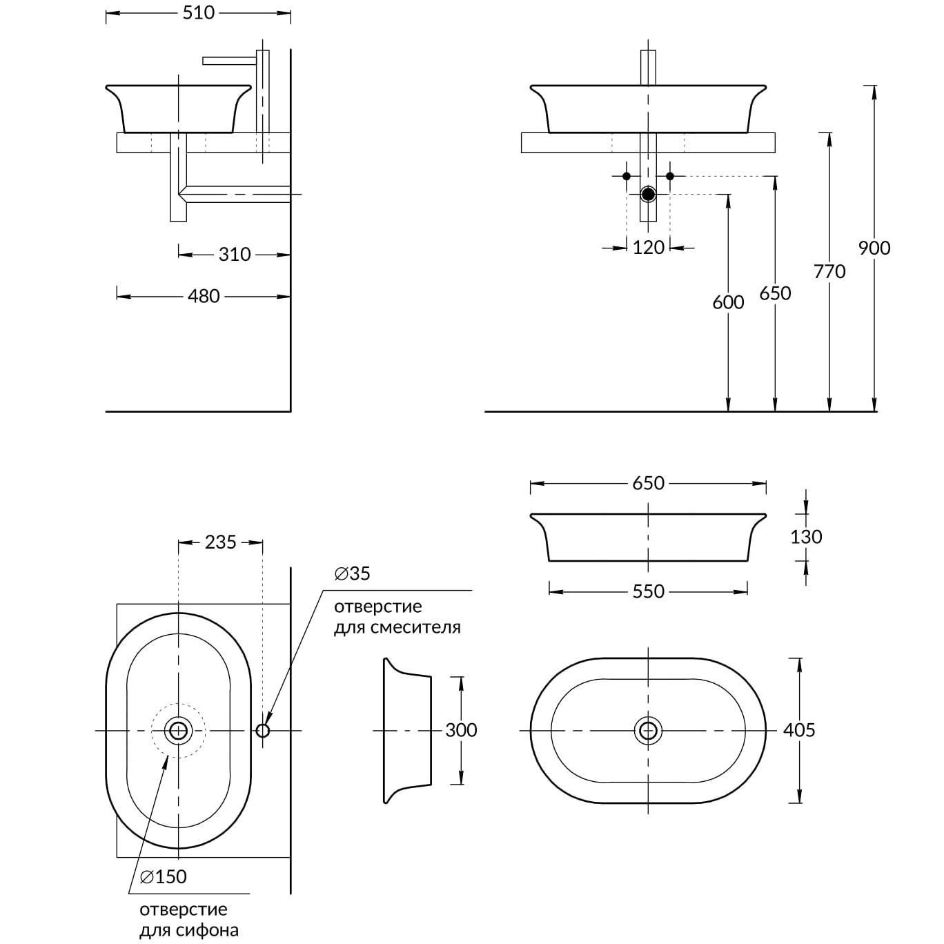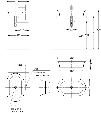 Тип раковины накладная