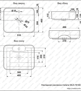 Раковина накладная MELANA 78180-805 51х41см