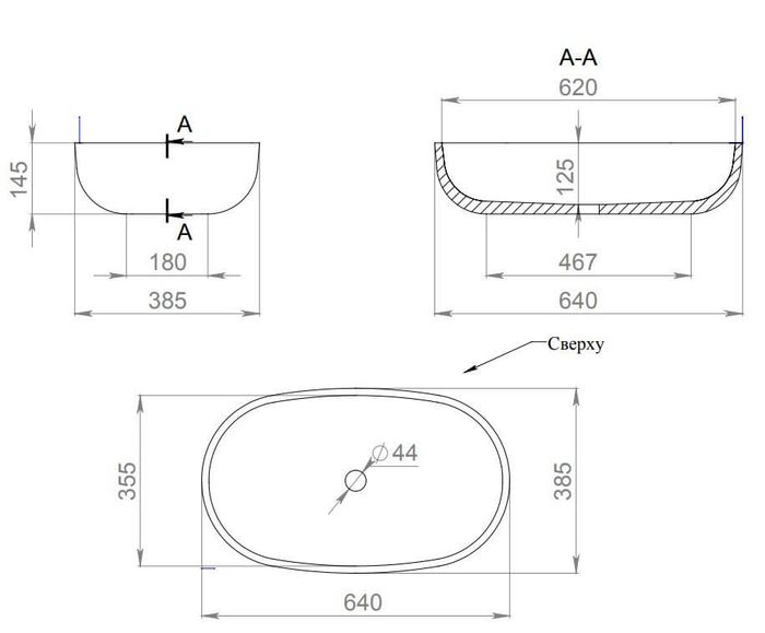 Раковина накладная SALINI GLORIA 1102205MRH S-Stone матовая 64х38,5см - купить в интернет-магазине Орегон с доставкой в регионы Крыма.