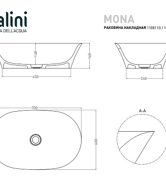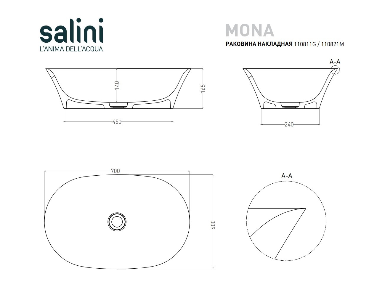 Раковина накладная SALINI MONA 110821MRH 39х60см - купить в интернет-магазине Орегон с доставкой в регионы Крыма.