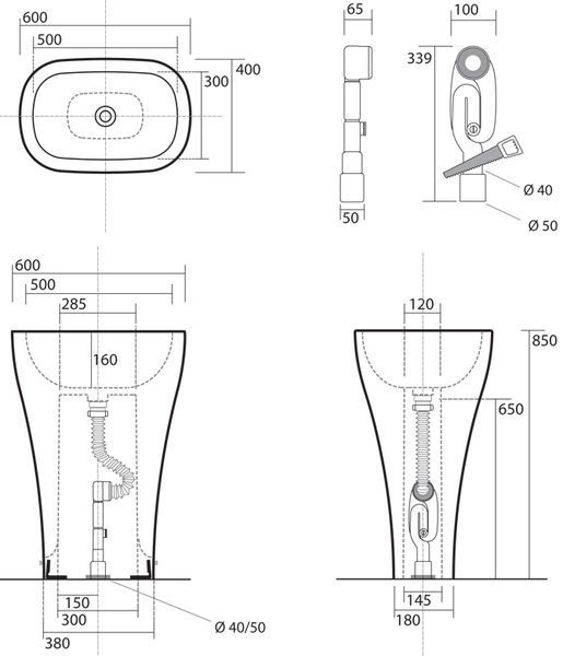 Раковина напольная Kerasan Aquatech 374201 60х40см - купить в интернет-магазине Орегон с доставкой в регионы Крыма.