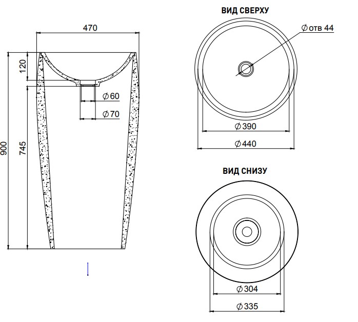 Раковина напольная SALINI ARMONIA 130113SM S-Stone матовая 47х47см - купить в интернет-магазине Орегон с доставкой в регионы Крыма.