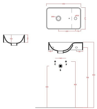 Раковина подвесная ArtCeram Savon LML003 01 00 45х27,5см