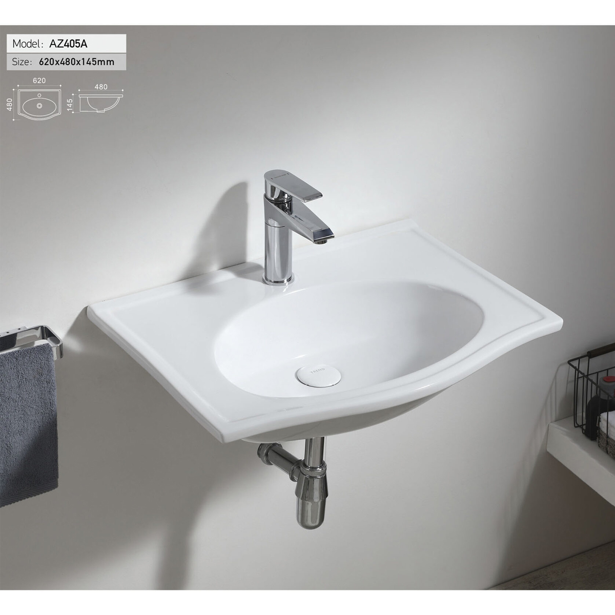 Раковина подвесная Azario Trend AZ-405-A 62х48см
