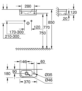 Раковина подвесная GROHE Euro Ceramic 39327000 37х18см