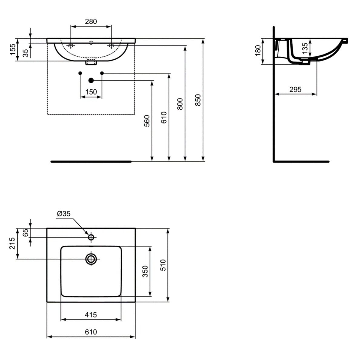 Раковина подвесная IDEAL STANDARD Ideal Standard i.life B T460501 61х51см