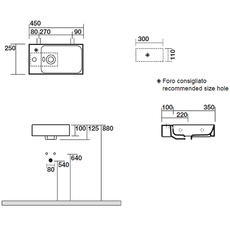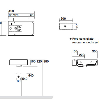 Раковина подвесная Kerasan Cento 353701L*1 45х25см