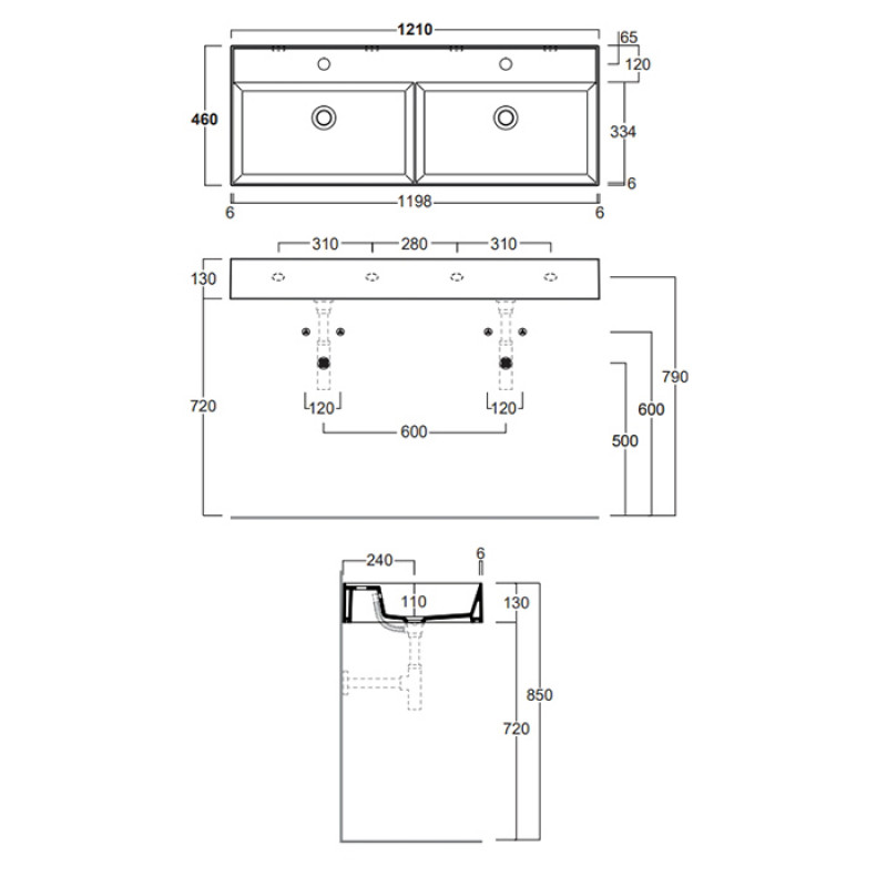 Раковина подвесная SIMAS Agile AG121D nero matt*2 121х46см - купить в интернет-магазине Орегон с доставкой в регионы Крыма.