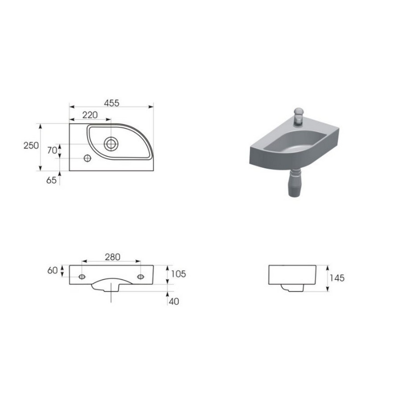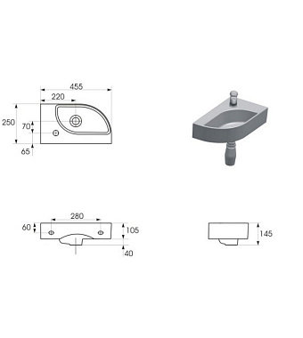 Раковина угловая CERSANIT CAMEO S-UM-CAM45/1-w 45,5х25см - купить в интернет-магазине Орегон с доставкой в регионы Крыма.