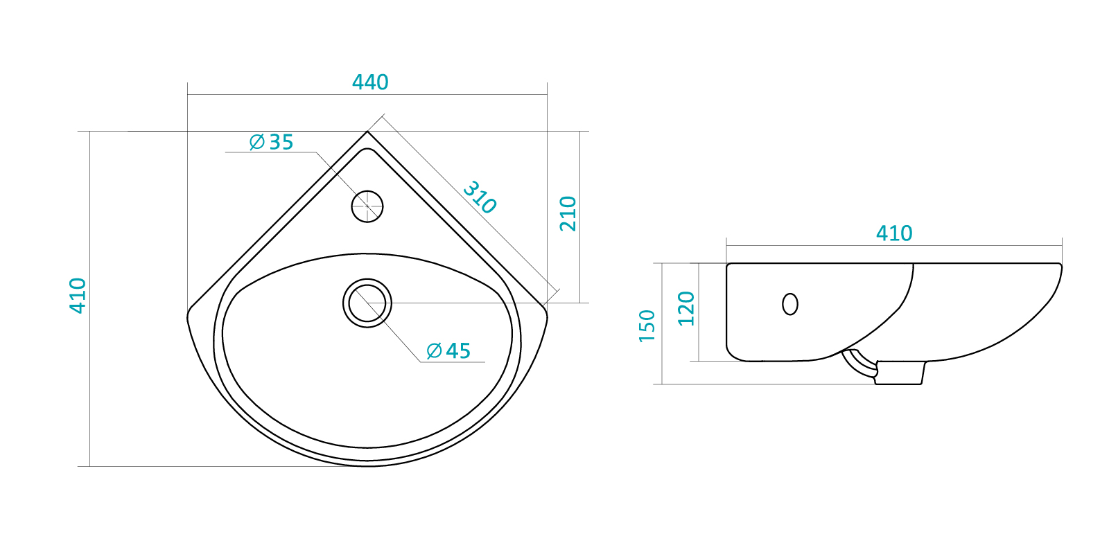 Тип раковины угловая