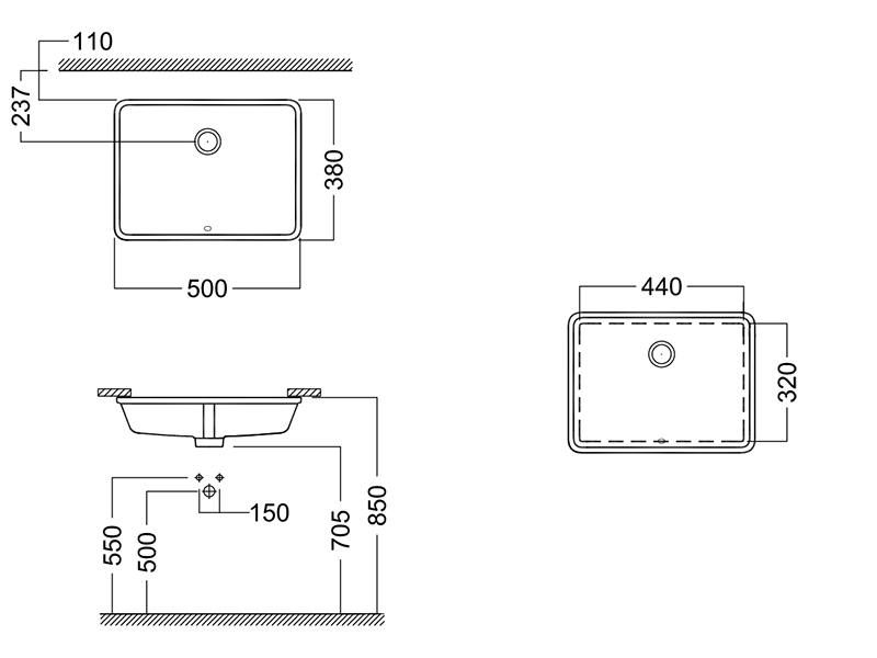 Тип раковины встраиваемая снизу