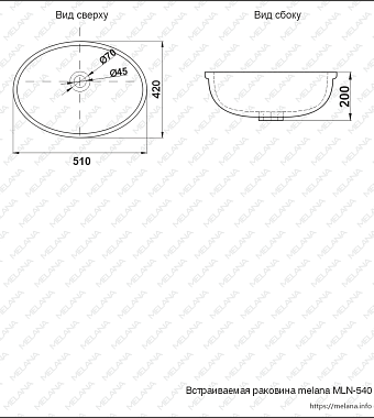 Раковина встраиваемая снизу MELANA 540-805 51х42см - купить в интернет-магазине Орегон с доставкой в регионы Крыма.