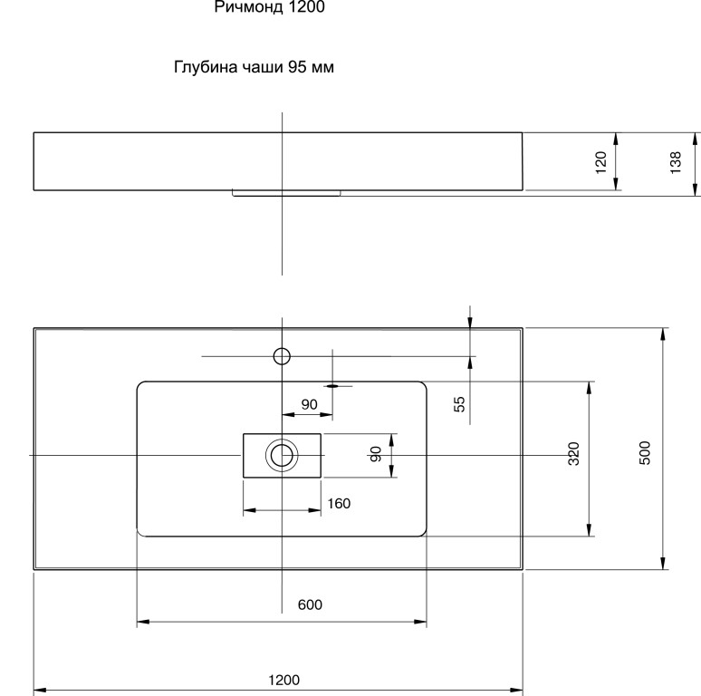Раковина встраиваемая сверху Акватон Ричмонд 1A70583KRD010 120х50см - купить в интернет-магазине Орегон с доставкой в регионы Крыма.