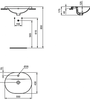 Раковина встраиваемая сверху IDEAL STANDARD CONNECT E503901 55х43см