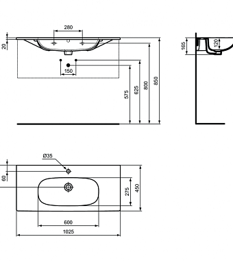Раковина встраиваемая сверху IDEAL STANDARD TESI T3508V1 102,5х45см - купить в интернет-магазине Орегон с доставкой в регионы Крыма.